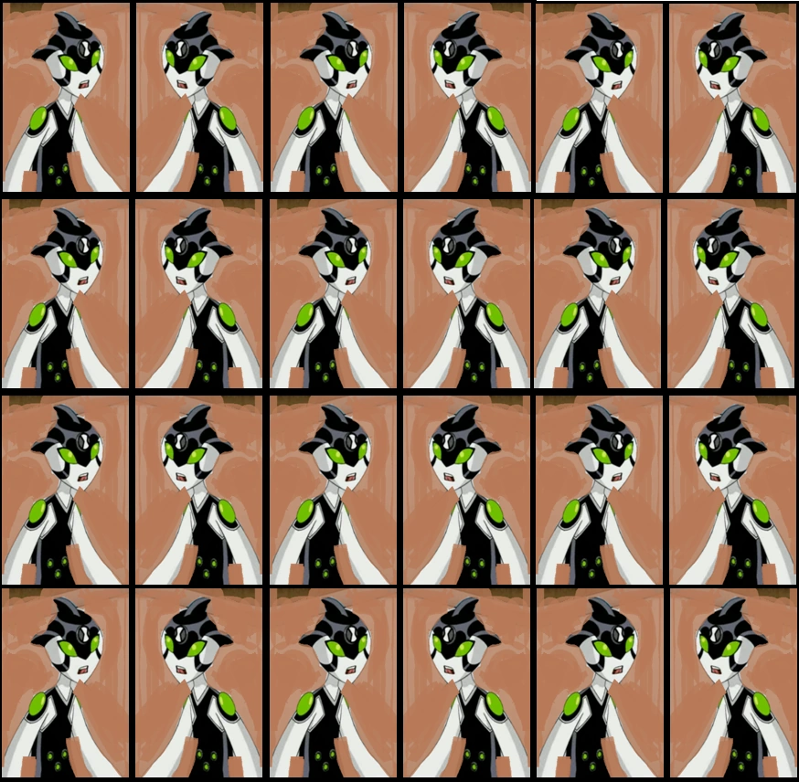 Ditto es el tercer alienígena más pequeño de la serie original, después de Materia Gris y Upchuck. Tiene una pequeña cabeza que parece un sombrero negro con 3 puntas en forma de aletas, una arriba y 2 en los costados, ojos verdes, un traje negro, líneas en la cara. Puede multiplicarse cuantas veces quiera, sin límite de multiplicación.