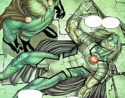 The Aegenans are a race that have been enhanced by a substance called the Justice Stone. These stones are symbiotic organisms, that are embedded in their chests. They are capable of imbuing the Aegenans with a variety of powers, including super strength, flight, energy manipulation and a staff composed of pure energy. Though the Justice Stones are only able to work within the EM fields of Aegenan, and some reclaibration would be required for them to operate on other worlds.