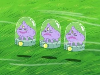 Members of this species are round beings, with four stubby arms and three eyes over a wide mouth. They are comparable in size to small fish and other sea creatures, such as Spongebob Squarepants and the sapient inhabitants of Bikini Bottom. They are presumably unable to survive underwater, as they were seen using fully sealed hovercrafts while visiting an underwater arrangement of statues.
