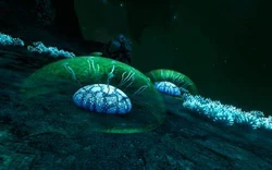 The Amoeboid is a marine animal exclusive to the Lost River biome on planet 4546B. Amoeboids are abundant within the biome and are commonly found in small groups.