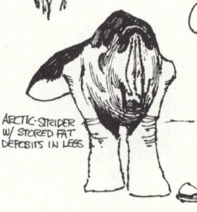 The Arctic-Strider is a bipedal species native to the Arctic regions of Darwin IV. They are known to store fat in their legs.