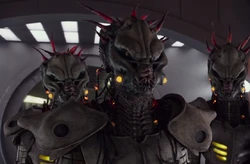 Standing two meters tall with an 80 earth-year lifespan, the Arysum-Kormn were the fourth alien species to board the Alpha space station. While they have a somewhat threatening appearance, the Arysum-Kormn are mostly peaceful and spend their time travelling from planet to planet using an alien mineral mined from their home planet, a moon on planet Rekkrdrakstar, called Korbium, which has similar properties to Dilithium, i.e. acting as a power source for their ships. Their nomadic lifestyle has given the Arysum-Kormn a reputation of being the most-traveled species in the known universe. During their travels, the Arysum-Kormn develop an encyclopedic knowledge of the species and planets they encounter in the universe during their lifetime.