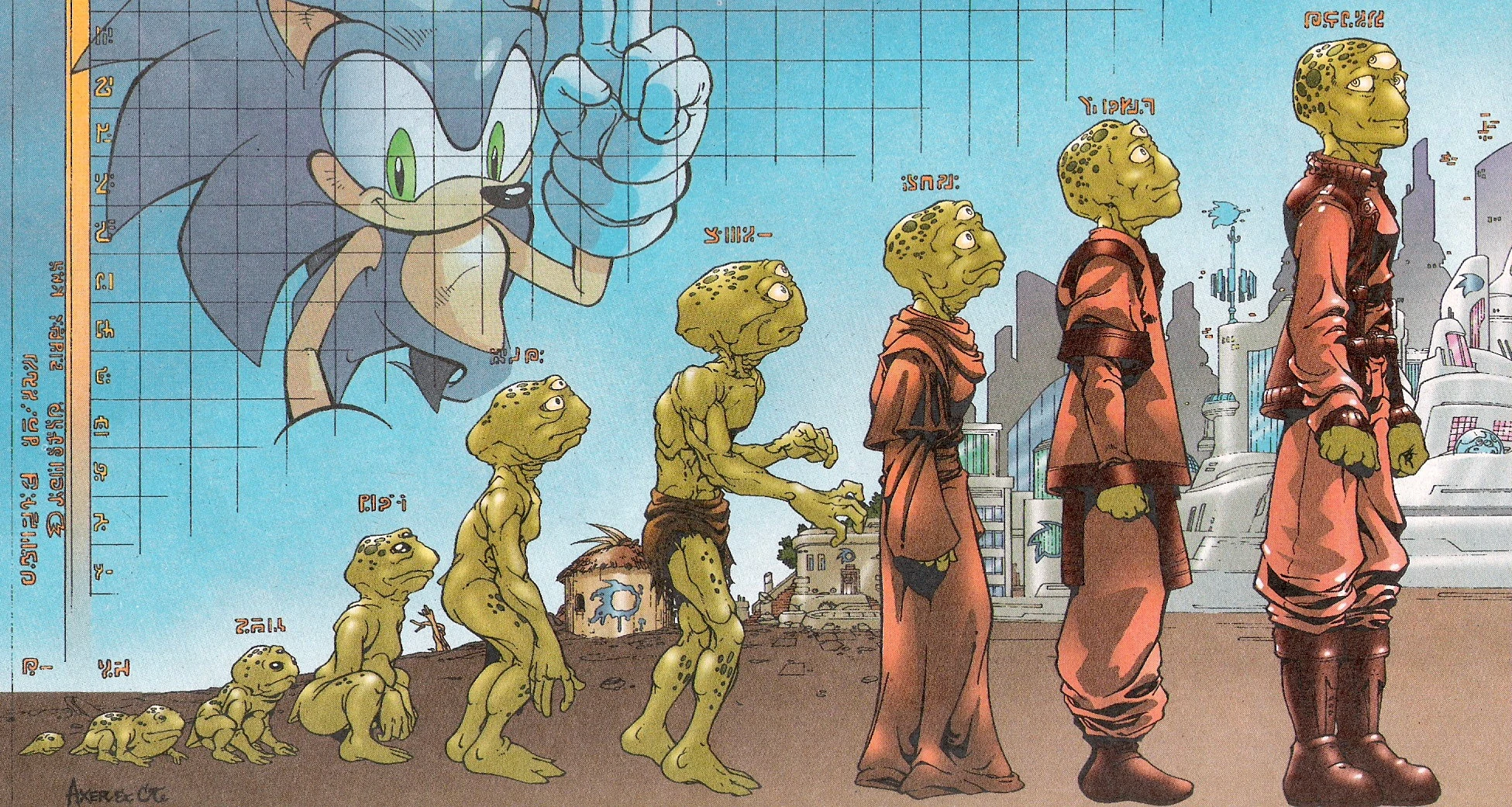 The Azurites are the dominant race of aliens originating from the planet Azuria, which Sonic the Hedgehog landed on when he was lost in space. Seemingly amphibious in nature, these 3-eyed beings evolved rapidly due to accelerated time on their planet.
