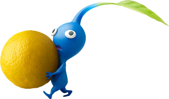These blue variants of Pikmin are the only known semi-aquatic Pikmin to have been currently discovered. They appear to have a "mouth" in front of their faces, but its only main function is to absorb oxygen directly from the water, in a similar manner to that of fish gills. This specialized adaptation allows Blue Pikmin to live almost completely underwater, though they are still capable of traveling on land if necessary.