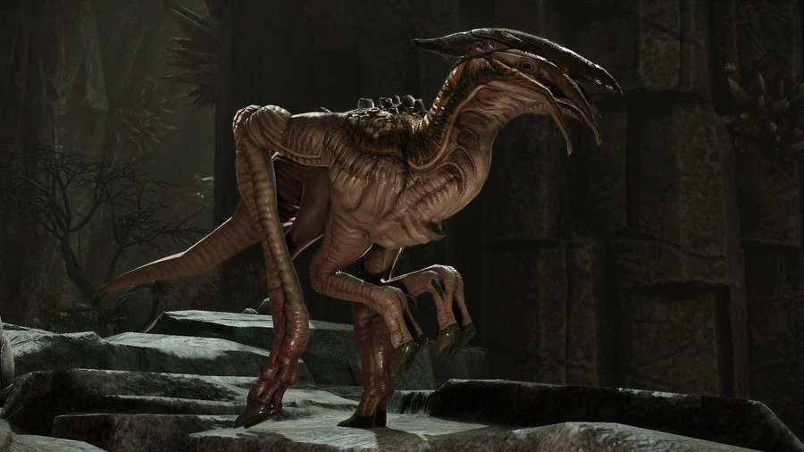 Canyon Striders are the desert relatives to the Marsh Strider, one of the natives to Shear. Like its marsh counterpart, the Canyon Strider is a herding animal, often found in groups, and are considered the main prey item in the desert landscape.