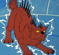 A Capellan Power-cat is a feline-like quadruped, about the size of a panther, with clawed tridactyl paws and a short tail. It has yellow eyes, brown fur, and a row of spikes on its back. It's infamously known for being impossible to keep in captivity and for its ability to emit electrical discharges of 2,000 volts.