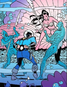 During his younger years Captain Duke McQueen fought against the Charybdis. Forty years later, after Duke returned to Tantalus to free the Tantalans from the Broteans, he fell into the Sea of Karkinos whilst escaping the Brotean raiding party that had captured the entire Resistance.