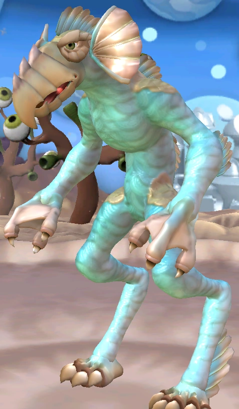 Chulahs are, in theory, semi-aquatic creatures with many features more closely akin to aquatic life rather than terrestrial life. Much of these include numerous funs along its back, legs, and arms, thick webbing along its three-fingered hands, and having blue tinted scales all over its body.