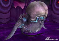 Chykka are a species of non-sapient, hermaphroditic arthropoids that appear to be indigenous to Dark Aether's Dark Torvus. They begin life within an coccoon, which eventually hatches into a gargantuan larval stage, typically by the strands holding the coccoon in place decaying to the point of dropping the entire structure into the poisonous waters which seems to facilitate hatching.
