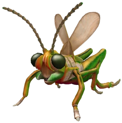Crikiits are, in essence, an alien giant cricket: six pairs of legs, a set of insect-like wings, and a pair of antennae at the front of the head. While they might appear completely like invertebrates, they in fact have bone structures (at the least in the head), as alongside insect mandibles, they also possess advanced human-like jaws to chew food.