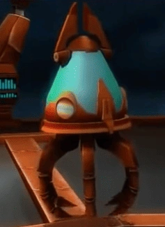 Cyber Squids are reddish-orange and aqua mechanical squid-like creatures. They possess six mechanical tentacles with flexible ribbed joints, two of which have mechanical claws on the ends. They have a reddish orange antenna on their heads.