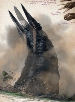 Dholes can also be found in the Vale of Pnath within the Earth's Dreamlands, where it's said that they hide so persistently in the darkness that no one has ever seen one, and that they're only known for the rustling sound they make and the slimy trails they leave in the mountains, where they hunt for prey.