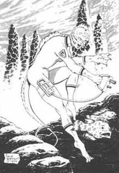 Draedans had scaled silver to green skin, red eyes, and long, prehensile tails which they twitched when upset. Their finned tails and webbed hands were used in swimming, while their claws and sharp teeth were testament to their carnivorous nature. They had both lungs and gills, and were at home in fresh or salt water down to two kilometers deep. Though they could also survive on land, they needed to keep their skins moist. They were also cold-blooded, and could not tolerate temperature extremes. On land, they stood 1.3 to 1.7 meters tall, and walked with a slightly hunched gait, using their tails for balance. Draedans made their homes in coral reefs, underwater lataren forests, or in moist forests on land.