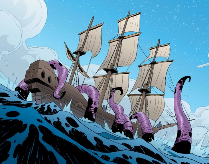 So far it appears to be a large creature the size of a merchant ship with pink octopus tentacles. They are known to be drawn to vickerstones prompting the natives to avoid carrying such cargo onboard.