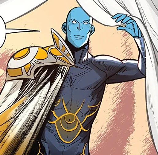 Eltarians are humanoids, and rather Human-like in external appearance, with the most notable external difference being that they have blue skin and are bald, although males can grow facial hair. Additionally, they have pupils that are either light blue or red. Eltarians are able to live for thousands of years, and at least one Eltarian was able to manifest as energy in the shape of his head while his body was stuck in a time warp. If put into life support in time, Eltarians can survive having all their skin burned off.