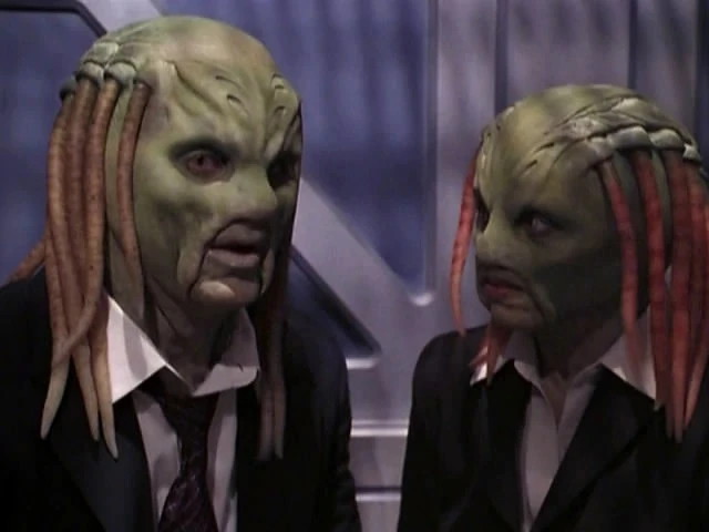 Members of this species are humanoid and have leathery green skin, no external ears and several fleshy tendrils on their heads in place of hair. Internally, it has been noted that their cardiopulmonary and neural systems are very different from Humans'.