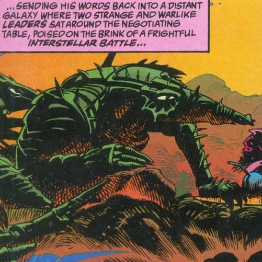 The G'Gugvuntt are a spacefaring species of vicious warlike creatures from a distant galaxy. They waged a war against the Vl'hurgs for thousands of years.