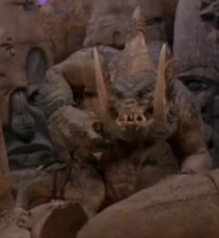 The Garthok is a six-limbed giant animal native to Remulak. These taloned, tusked, and single horned beasts emerge every Zerl, or Remulakian Year, specifically when the three moons of Remulak align. During this time of Zerl the Remulakians or Coneheaded aliens bring forth criminals to fight the garthok, in order to get a reprieve from their crimes. Considering the size power and Ferocity of the Garthok, and how most Remulakians who were to face the Garthok ended up mutilated, it can be assumed that it is rare for a Remulakian to regain his freedom.