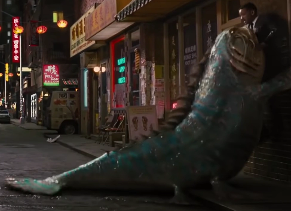 A giant catfish-like alien attacking Agent J