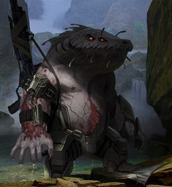 The Gnashast are a relatively-recent addition of life on their home planet. They were originally descendants of benthic creatures that only just crawled onto the land a few hundred thousand years ago. When the sea levels rose, it forced the Gnashast to climb to land quickly and become the planet's alpha predator. Currently they are now entering the space age.