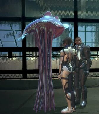 The Hanar are a species resembling Earth's jellyfish and are one of the few non-bipedal Citadel races. Hanar are known for their intense politeness when speaking, and their strong religious beliefs regarding the Protheans, whom they refer to as "the Enkindlers".