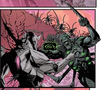 Carcer was brought to Graegan's arctic region where the second Hurde vessel was being kept under guard. Despite Carcer being invited to investigate, his loyalty was brought into question as many of the military soldiers found it suspicious that the man managed to not only survived the Hurde once but twice and even suspected him being an agent of the aliens. When Carcer was brought on the Hurde ship, his eyes began to react to the controls. One of the soldiers turned his weapon on him, causing Carcer to lash out to defend himself taking the guard out and his companion. The connection to the Hurde ship strained Carcer, weakening him long enough for the military soldiers to restrain him, now more convinced that he was compromised by the Hurde.