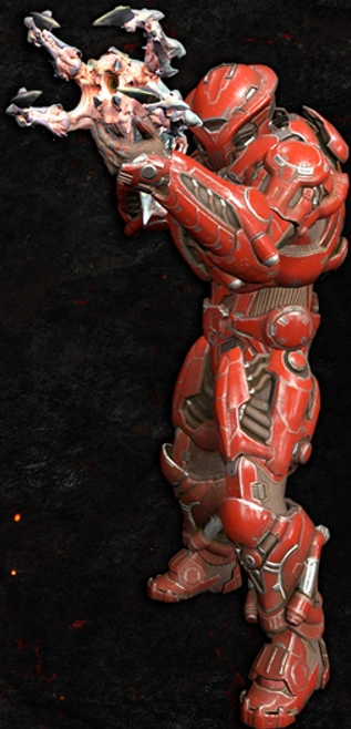 Jekkadians were an ambitious and extremely prosperous species, seeking to create an eternal paradise, seeking out more and more power to achieve their goal. Davoth gave them no restraints, so they could not be hindered by indecisiveness, causing their ambitions to grow even more. Soon, they, like Davoth, wished to surpass mortality and become immortal. This desire of immortality led to a species-wide obsession, one that had Davoth strip them of their free will and bend their minds to the singular goal of achieving immortality at any cost, something that even his great power could not do. After Jekkad was pushed to the bottom of existence by the Maykrs, what became of the surviving Jekkadian society, sheltered in the city of Immora, is unknown, only that they became Hell's ruling class. Their society appeared to still function in some way within the city, ironically able to achieve immortality in their damnation with Hell Energy. Davoth formed an army of Jekkadians, who became known as Demonic Troopers, to serve as his personal guards and the military force of Immora. Demonic Troopers, holding an especially honored rank, were equipped with either energy spears or biomechanical energy guns, fully clad in red armor, and remained loyal to Davoth throughout the eons. All remaining resources and remnants of Jekkadian technology were devoted to securing Immora against invaders or the very demons of Hell, erecting near-impenetrable high walls around the perimeter of the city. While Jekkadians used Hell Energy to prevent conversion into demons, Demonic Troopers have been seen fighting alongside demons under the command of Davoth, but no non-corrupted Jekkadian has been seen venturing out of Hell. The aesthetics of Jekkadian architecture and technology bear a striking resemblance to Maykr architecture and technology, only red in color and lacking most decorations, possibly due to Davoth creating both species. Jekkadians also got ahold of Wintherins, corrupting them into demonic forms and utilizing them as war assets, like the Argenta Night Sentinels. Jekkadian technology was relegated only to the Jekkadians.