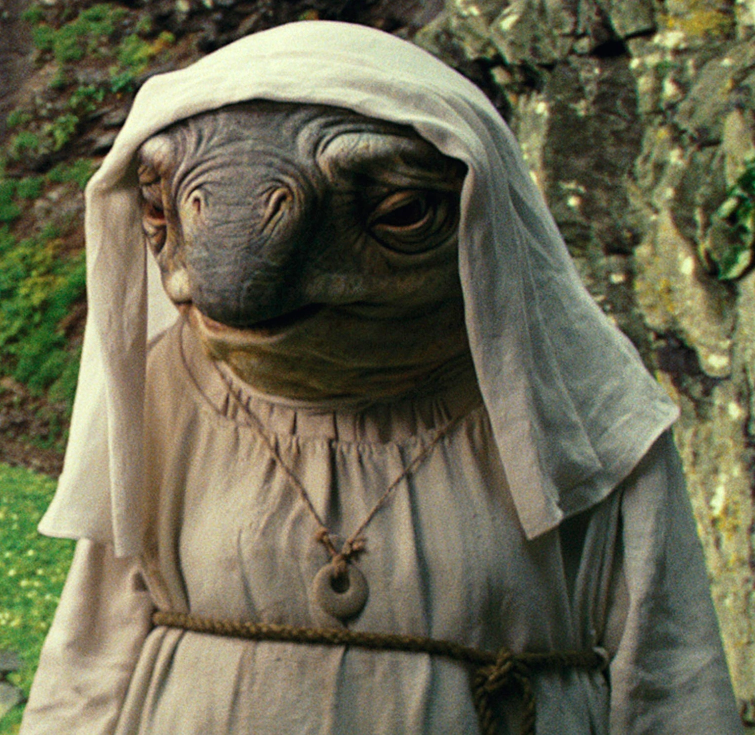 They appeared to have an amphibian, fish and a puffin mixed appearance judging to their bird like legs and facial looks. They spend most of their lives living in the islands of their homeworld. Females would work as caretakers in a nun like fashion towards the jedi temple in the island while the males would travel underwater and would not return until the following month. When Luke Skywalker arrived on their planet after his nephew Kylo Ren murdered most of his students, the lanais aren't happy and more stern towards him by the time of his arrival.