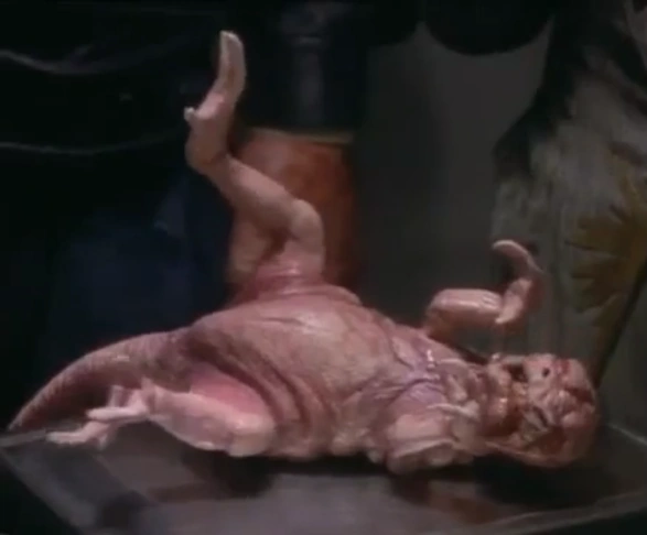 A small pink-skinned scavengers that resembles a cross between a naked mole rat and a kangaroo.