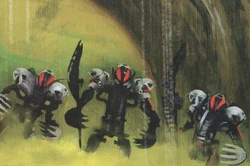 The Makuta are a species of pure energy called Antidermis encased in armor. They originate from a sentient pool on an island in the Southern Islands. They have a Brotherhood that provides leadership. All but two members of the species have died.