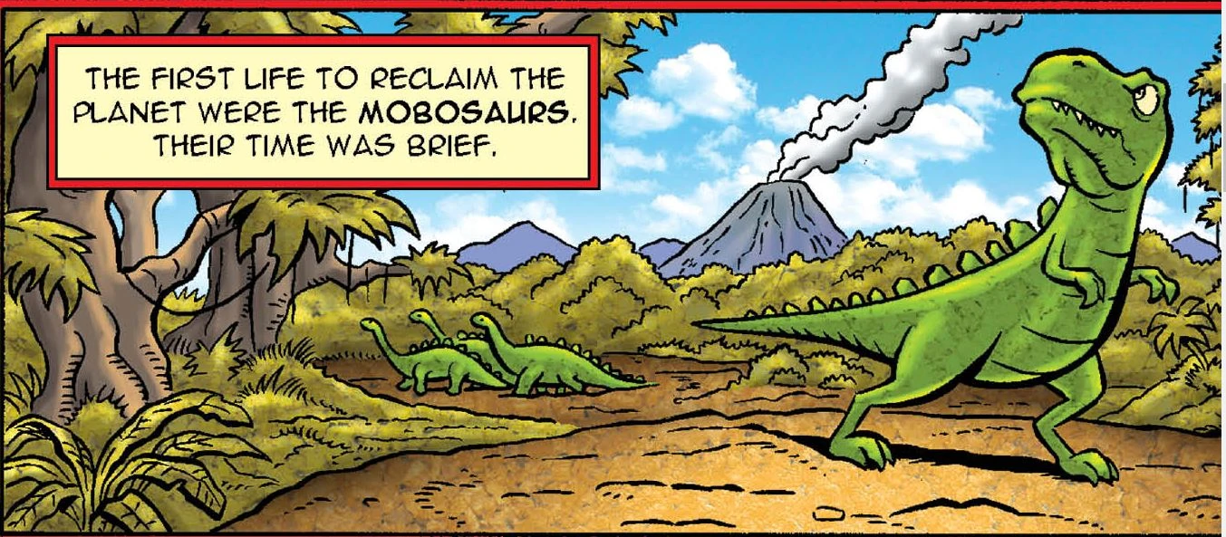 The Mobosaurs were dinosaur-like creatures that used to be the original inhabitants of Mobius. They resemble dinosaurs in spacesuits. It is unknown if they are related or not.