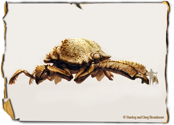 The Mountain Meat Beetle is a Venusian creature that spends most of its time underground. For this, they build vast burrows in the insides of mountains. They only come out of these burrows once in a while to search for food.