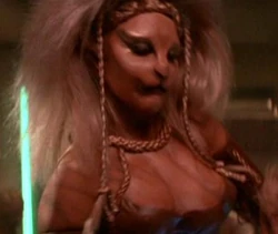 - This character has been referred behind-the-scenes as a Kzinrett, which would be consistent with her animalistic feral behaviour. However, Kzinretti have never been depicted with three breasts.