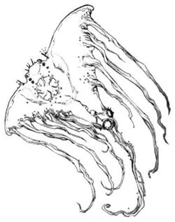 They are powerful, winged creatures which have a multitude of fleshy tendrils streaming from their undersides. It is these tendrils that allow an Oswaft to manipulate objects. Normal adults are known to reach lengths of 750 meters or more, while the Elders can grow to 1,000 meters. They have strange, transparent flesh, inside of which can be seen the colors and sparks of chemical reactions. It is believed that some two-thirds of their body mass is used as their brain. When an Oswaft dies, their flesh becomes opaque, and eventually decomposes into its molecular components.