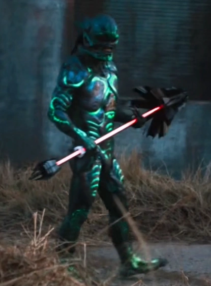 They use two handed mace-like weapons that shoot energy blasts. They have a stealth capability that seems to be based on light reflection.