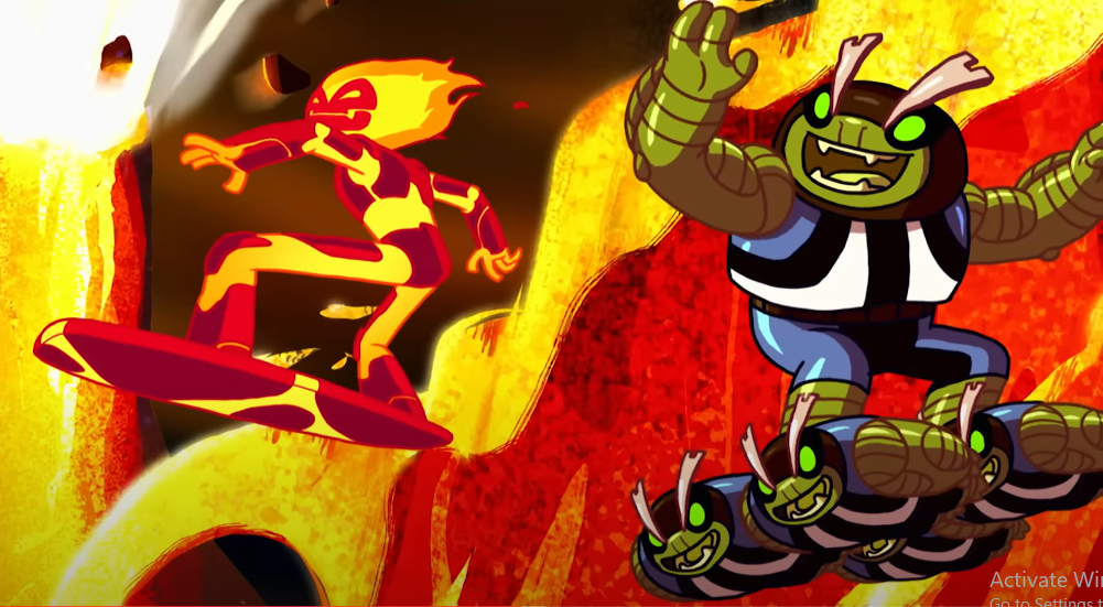 - When Ben transforms into Heatblast to escape the Chimeran Hammer in the original series episode "Secrets", the way Heatblast's magma DNA melds onto him makes him briefly resemble Inferno.
