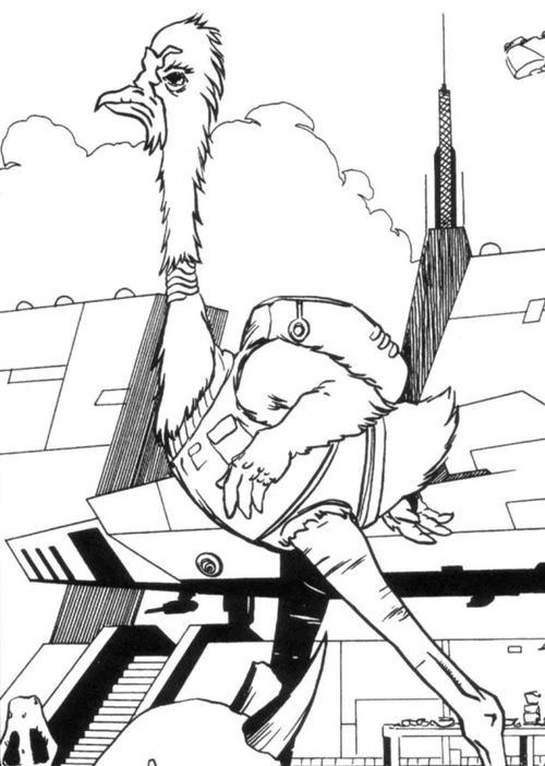 The Quor'sav were a warm-blooded, avian/monotreme species whose average height was about 3.5 meters, Quor'savs were native to the planet Uaua. When a group of colonists arrived on Uaua, the Quor'sav initially welcomed them. However, when a virus that had been carried by the colonists to the planet began infecting the Quor'sav, the avians were forced to stop all immigration until a cure could be found. Since this time, the Quor'sav have been reluctant to trust other species, especially mammalian races. One member is the pilot Kal'Falnl C'ndros.