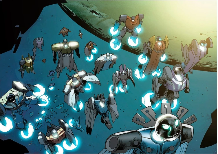 The Sentient Class-I Independent Operation Units once roamed the universe in pods, however many were killed during a random meteor storm, the survivors were conscripted into the Armor Hunters, who's leader, Control, saved some. They later began serving as mobile bases for the Armor Hunter squads.