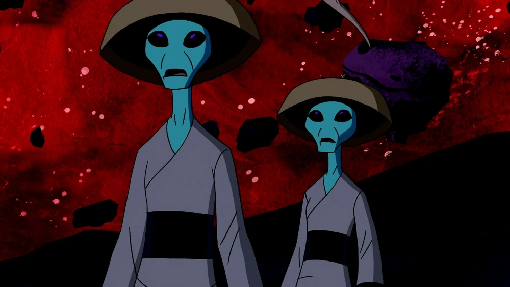 Most Settlers are blue-skinned humanoids vaguely resembling Greys with black eyes and dark purple line-like pupils. Others have different appearances depending on the individual.