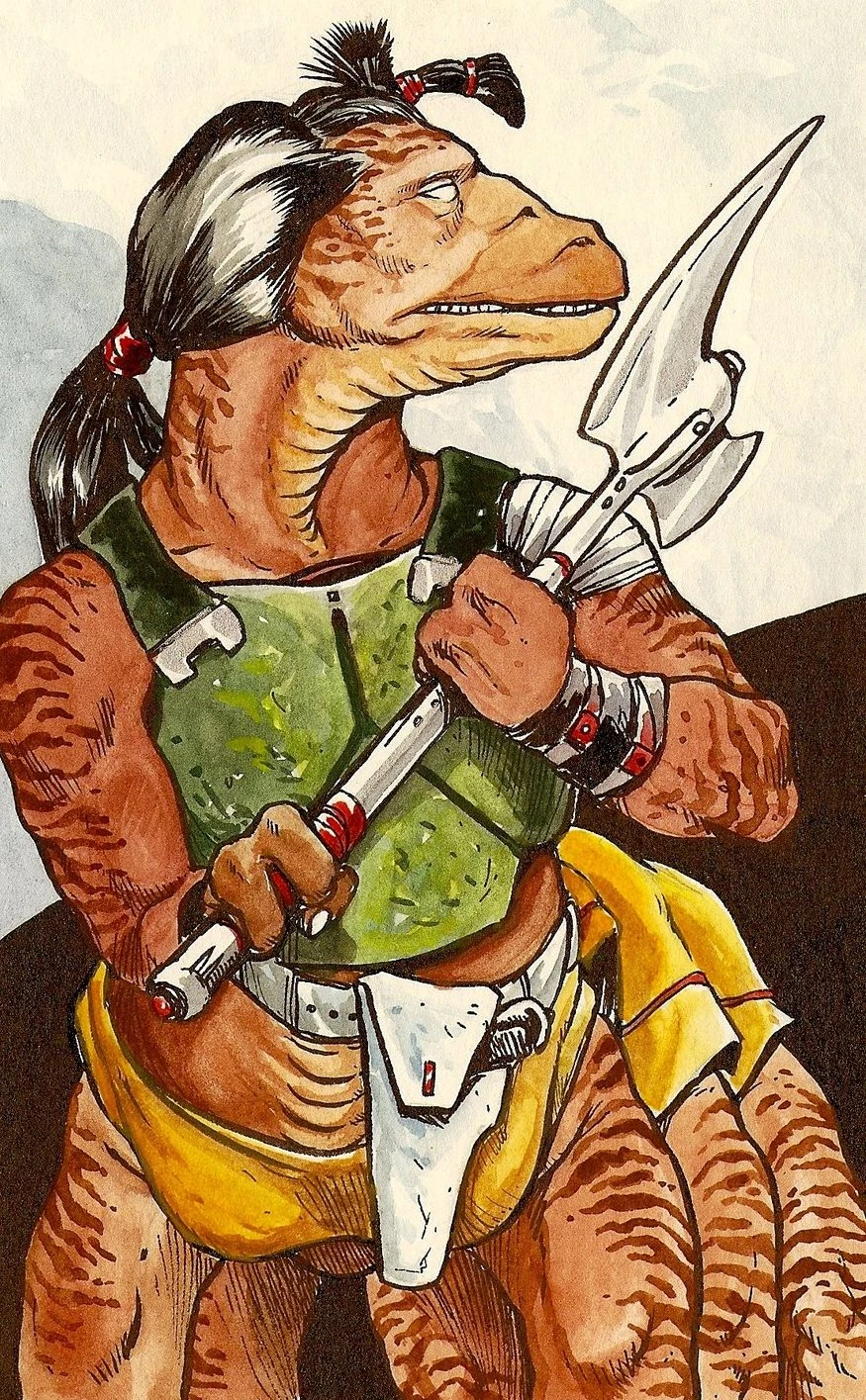 They evolved a primitive, tribal society based on a complex feudal system containing several rigid castes. Each caste had its own codes and rituals, but primary among all of them was the honor of battle. To the Sludir, combat is the surest test of individual power. No Sludir has ever fled from battle. They also have an intense desire to further their families, and the securing of an heir is extremely important. However, the Sludir's immense strength and unusual appearance makes them prime targets for slavers and mercenaries.