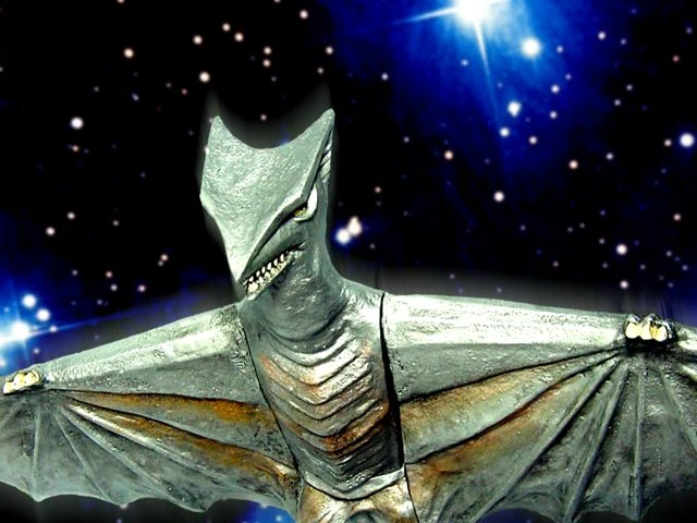 Space Gyaos is a genetically-engineered extraterrestrial version of the Earth kaiju, Gyaos. It's overall similar in appearance, but has silver-colored skin. Unlike the Gyaos on Earth, Space Gyaos is not affected by sunlight (as in space, it would be impossible for him to avoid the light). It appears as a minor antagonist in the Showa era Gamera movie, Gamera vs. Guiron.