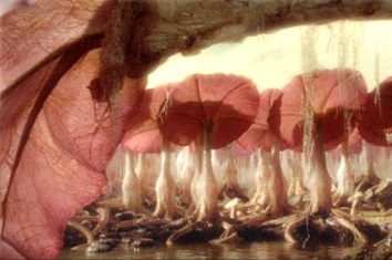 Their roots are pierced and eaten by Mudpods, who fell their tall bodies to build dams. Those same fallen Stingerfans also provide shelter to Gulphogs who hide from the searing heat of the solar flares.