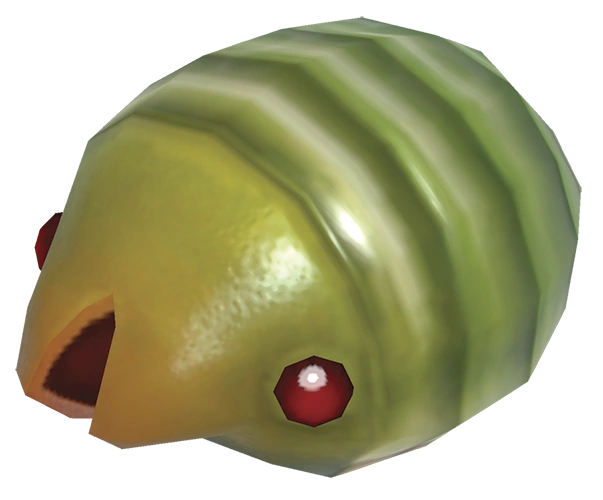 Swarming Sheargrubs are closely mirroring the female Sheargrubs in appearance, but are considered much larger and green in coloration, with red eyes. Their size grows the more they consume, growing twice as big at the most during a singular feeding session.