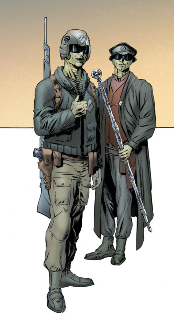 Tolneps always wear face masks. This is because they see in infrared only and need to have a filter plate, as they go totally blind when subjected to shorter wavelength light. They can be killed with ultraviolet weapons. They're also intensely allergic to cold and have a body temperature somewhere around either 200 degrees or 300.