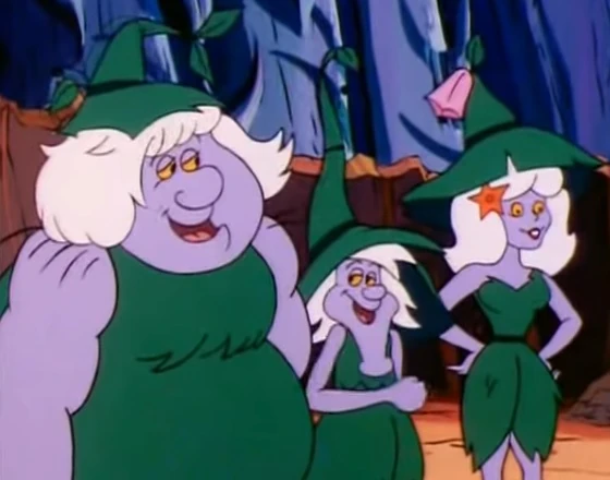 They live in the woods and are governed by a king and queen. Their clothes are made out of green foliage.