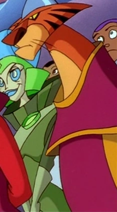He is one of the many senators in the Galactic Alliance. He Resembles a bipedal Tiger, wearing a dark magenta tunic with gold trimming and a metal hat. When Held captive in the Chlorm Zoo, he served raw meat fleshes, suggesting his species are generally carnivores.