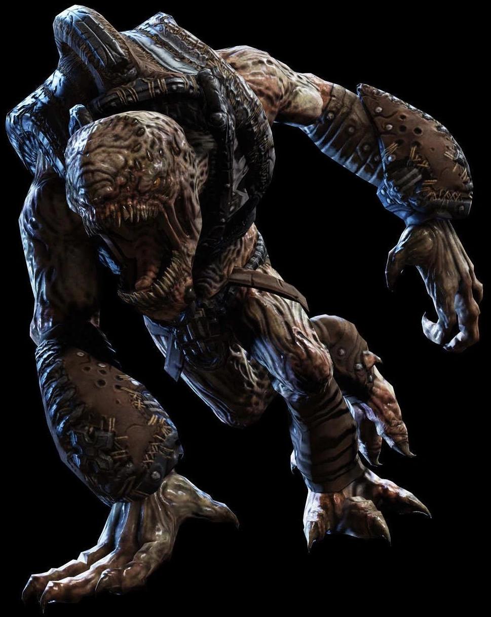 Wretches are members of the Locust Horde and, like them, are natives to the planet Sera. Unlike typical Locusts, Wretches walk on digitigrade legs, and are capable of clinging to nearly any surface. While this ability grants them the useful tactic of surprise attacks, once they spot their intended victim, they will often make their presence known by letting out a horrid, extremely high-pitched scream that can not only force a human to cover their ears and clutch their heads in pain, but it is even capable of shattering nearby glass or certain objects - this is what lends them their name of Wretches. They seem jittery and impatient, and will immediately charge a foe in a frenzy, leaping towards them once close enough in order to rake at them with their scalpel-sharp claws.