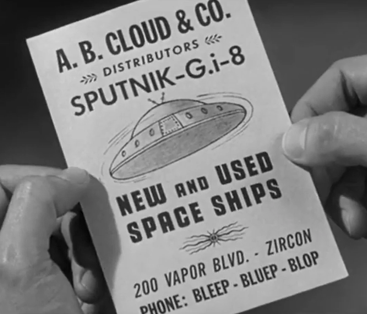 Zirconians utilize flying saucer-shaped spacecraft for interstellar travel, piloted by crews of two, which are capable of broadcasting messages from a microphone inside. The controls are a set of dials, used by a standing operator. One spaceship model made by the Zirconians is the Sputnik-G.i.-8, which has a flat bottom and two small antennae coming from its top dome. The exact capabilities of this model are unknown, and the only Zirconian spaceship seen by Humans did not appear to be a Sputnik-G.i.-8.